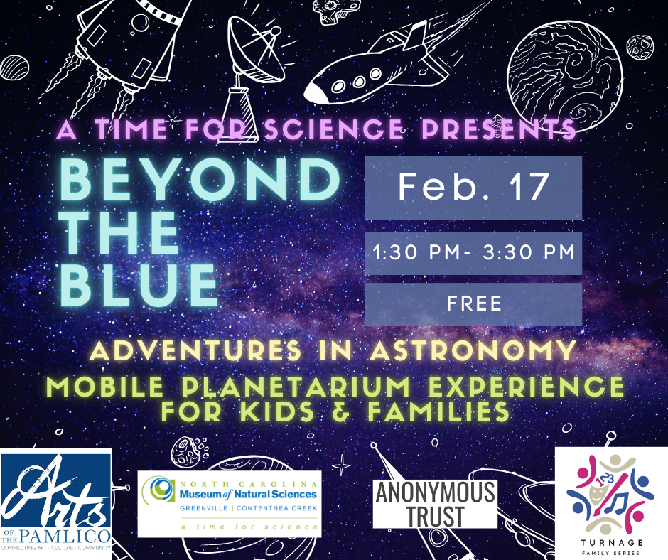 Beyond the Blue is a year-long planetarium series at the Turnage Theatre. Additional free programs will take place throughout the year, each featuring a different space-themed topic and hands-on activity.
