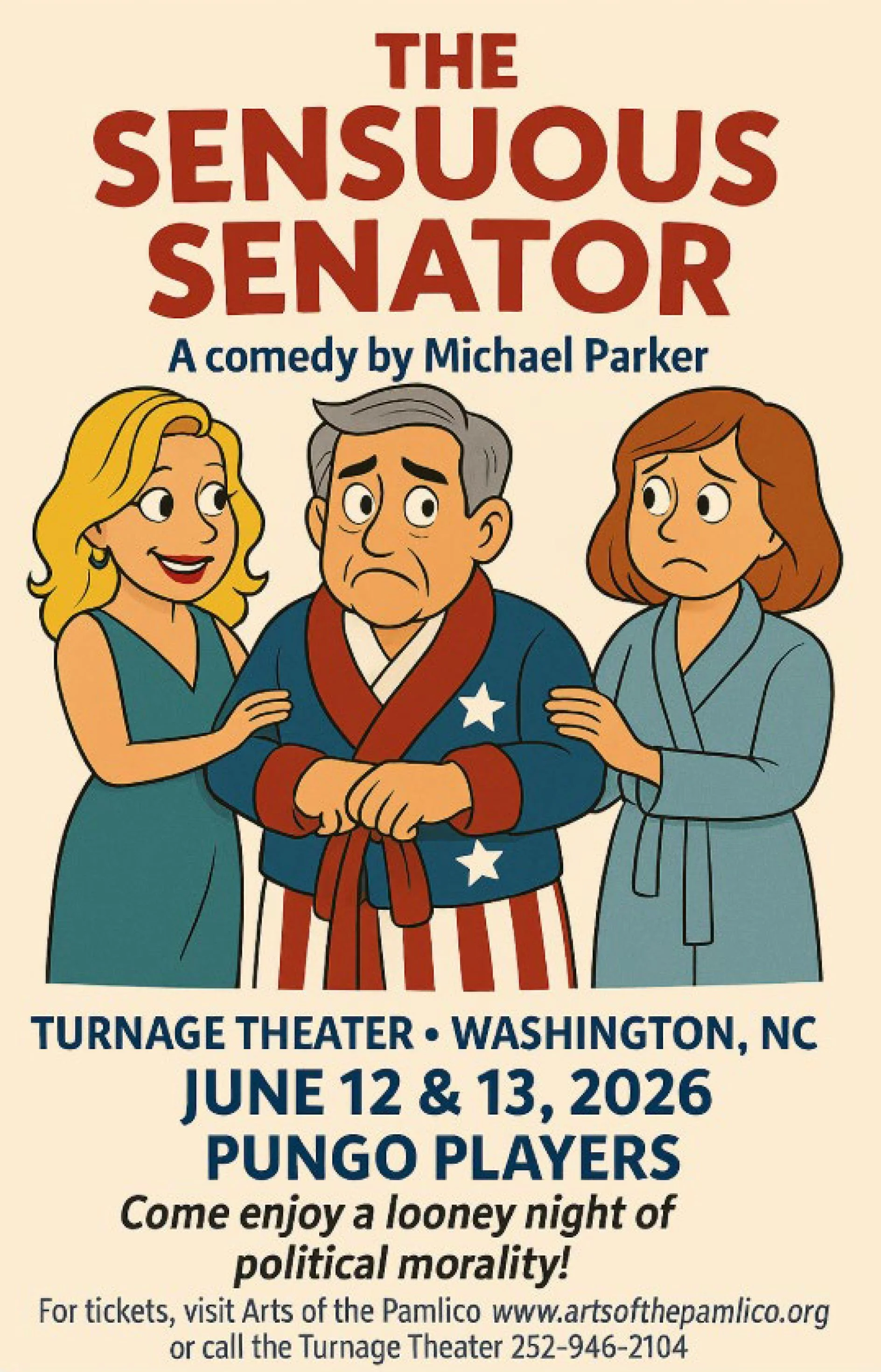 Politics has never been this scandalous—or this funny! Join us at the Historic Turnage Theatre as The Pungo Players bring Michael Parker’s riotous farce, The Sensuous Senator, to the main stage.